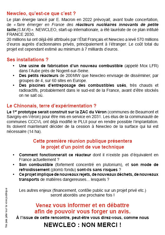 PREMIERE REUNION PUBLIQUE DU COLLECTIF STOP-NEWCLEO LE 28 NOVEMBRE A CHINON !